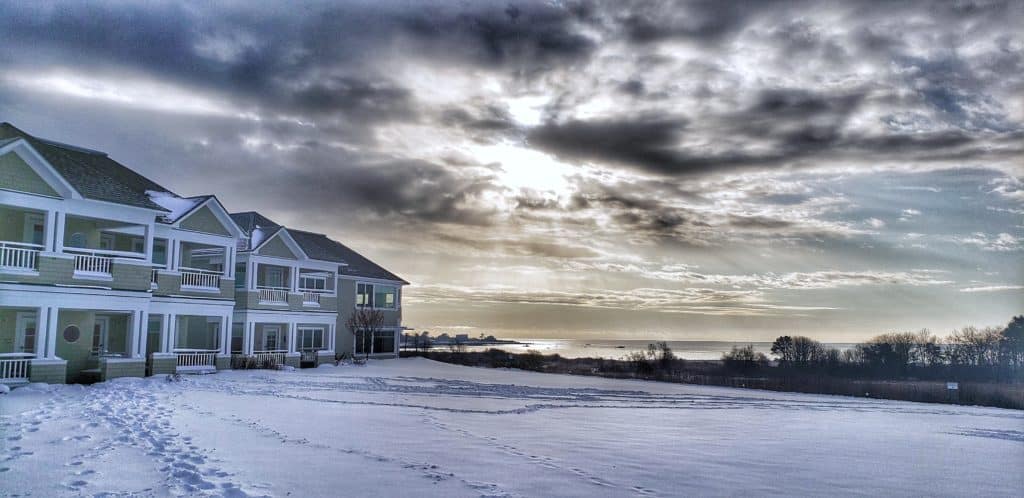 While at the Inn by the Sea, I got to do a lot of firsts. First time snowshoeing. First time walking to the beach in the snow, and then being pleasantly surprised that it stopped where the tide came in – science y’all – and the first time sitting on the beach alone in my life. Can you believe it? The beaches are too far from my house in Chicago for me to go during the winter, and well, the water freezes out this way so it all becomes a bit sludgy.