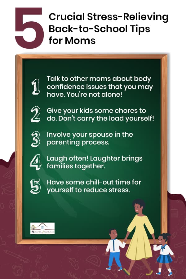 - Make sure you’re not trying to be a super parent. If you’re not a single parent, there is NO NEED to be the only person giving instruction to your children all the time. Your spouse is more than willing to help you out, and you may be prohibiting them. Once I learned to let Mr. Houseful just be, the stress came down. And instead of fuming about things that I don’t really like, I tell him about it immediately, and then we go about our day.