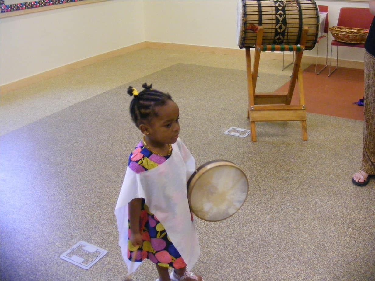 Anyway, sometime last week, I think – the ladybug attended a special program for toddlers, called the Alphabet Rhythm Project, at the library. It turned out she was the only one for half of the program, yet that didn’t stop her. We sang, played instruments, listened to a story and even got to sign our alphabet. It was great.
