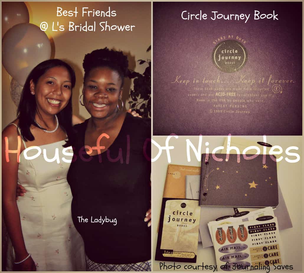 This weekend, I was able to sit and really read a little item that my bestest friend in the world sent me last week, called a Circle Journey book. Before letting you see it, I want to explain how when we were younger, we weren’t allowed to go over each others houses. Our parents liked us, but they didn’t like the city that we lived in, or the odds of a little black girl, or a little Filipino girl traveling all by themselves together in it. Mind you, we took public transportation to school, or walked every morning. It’s odd how when I was little I thought that they were crazy, but now looking at my 12-year-old son, I realize that they weren’t, but their love for us just made them more protective. Even if it did seem stifling and unnecessary.