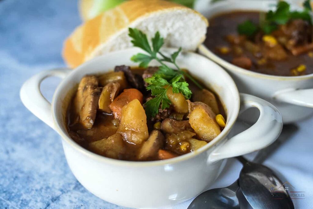A hearty soup that offers plenty of broth to dip your crusty bread in! Full of beef and vegetables.