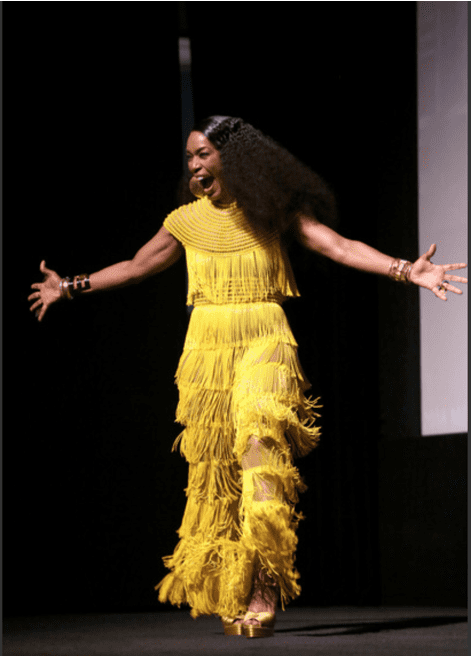 I was enthralled by the beats of the drums and the sizzle of the air because of excitement and heat. There’s something to be said about seeing the Dora Milaje waiting as every cast member came to pose with them before heading in for interviews. Seeing Ms. Angela Basset shimmy in her yellow fringe jumpsuit was amazing as well. I’m still legit jealous of the guns on her body, and HOPE my arms look that way forever.