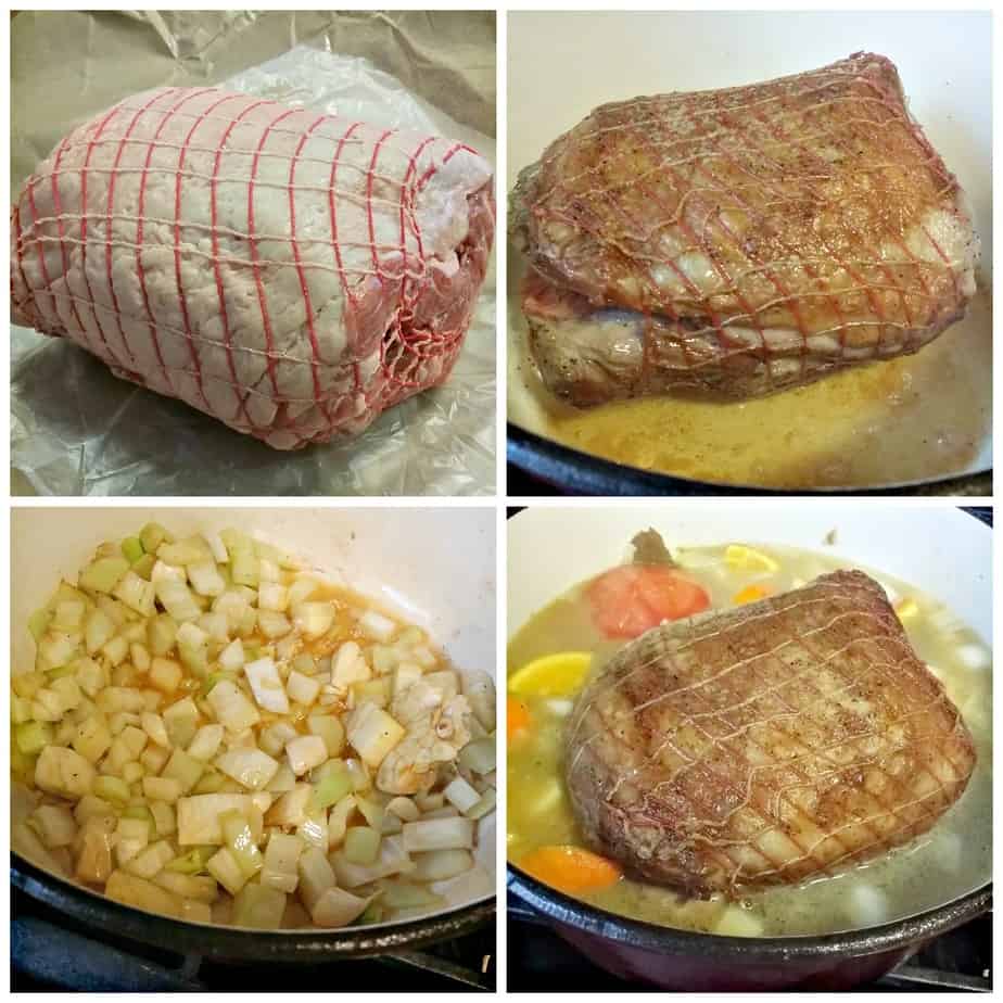 This creation was also done in one of my dutch ovens (a red one – one of these days I REALLY have to introduce you all properly to my dutch oven love) and used lots of different things to flavor, and I didn’t have to go on a wild goose chase to get them. I did pick my lamb up from Whole Foods, and while pricey, I knew that I was getting a great cut, and it was fresh. The recipe that I used suggested cutting it into chops beforehand, but the Whole Foods butcher advised against it, so I went with his suggestion. I may try it the original way sometime later, but I wasn’t disappointed with the way that it came out. One thing that I DO need to keep on hand is dry white wine. EVERYTHING calls for it that I want to cook, and I don’t drink it.