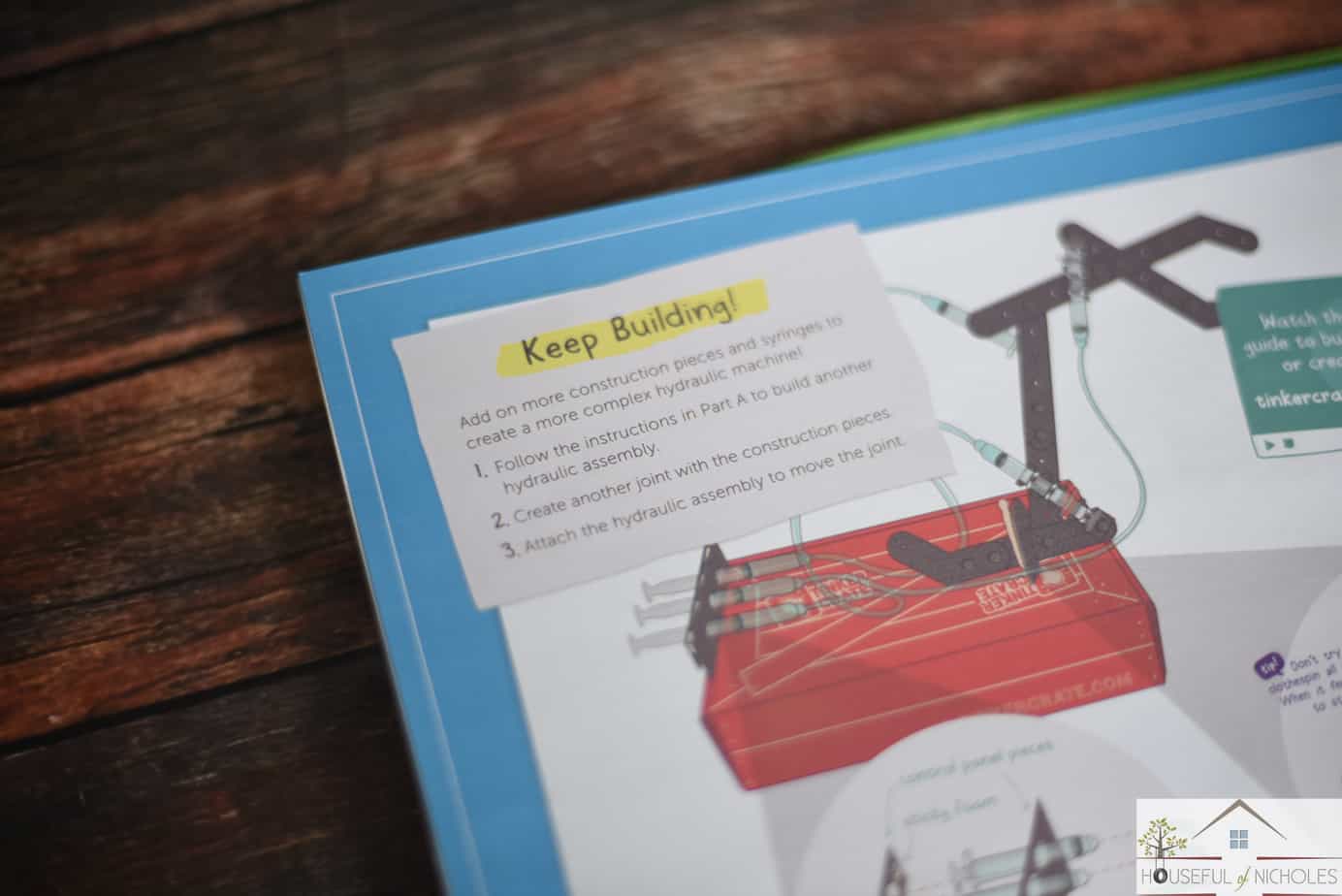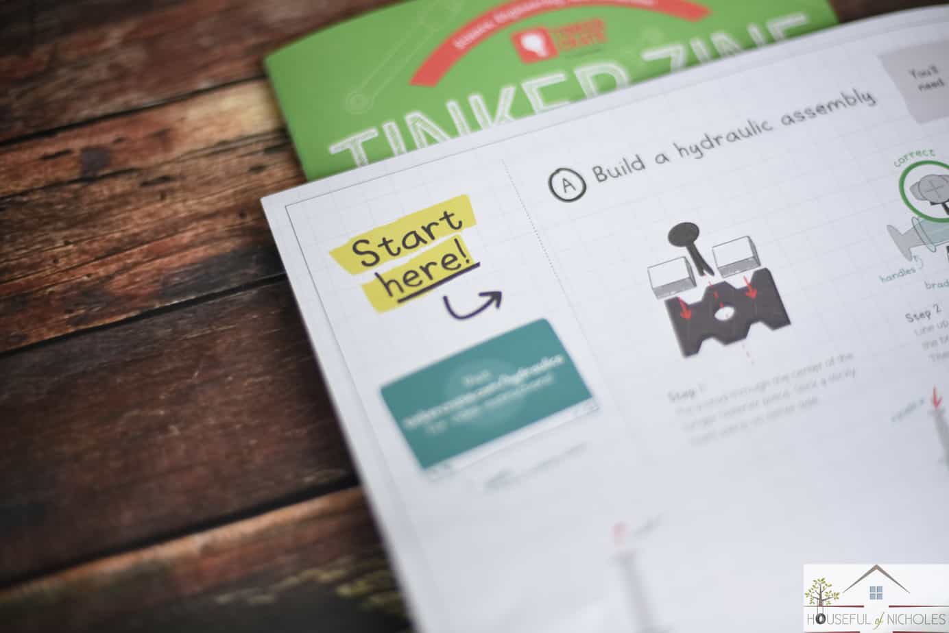 Today, we broke open the hydraulic claw crate that came in the mail last week, and I let the ladybug loose with a bit of guidance from me. The type-A parent that I am, sat down at my desk, and let her tinker away at putting the claw together and seeing all of her hard work come to fruition. She had a blast connecting brads and zip ties together and seeing everything working together. It also came with a mini Tinkerzine magazine that helps to delve into hydraulics a bit deeper.