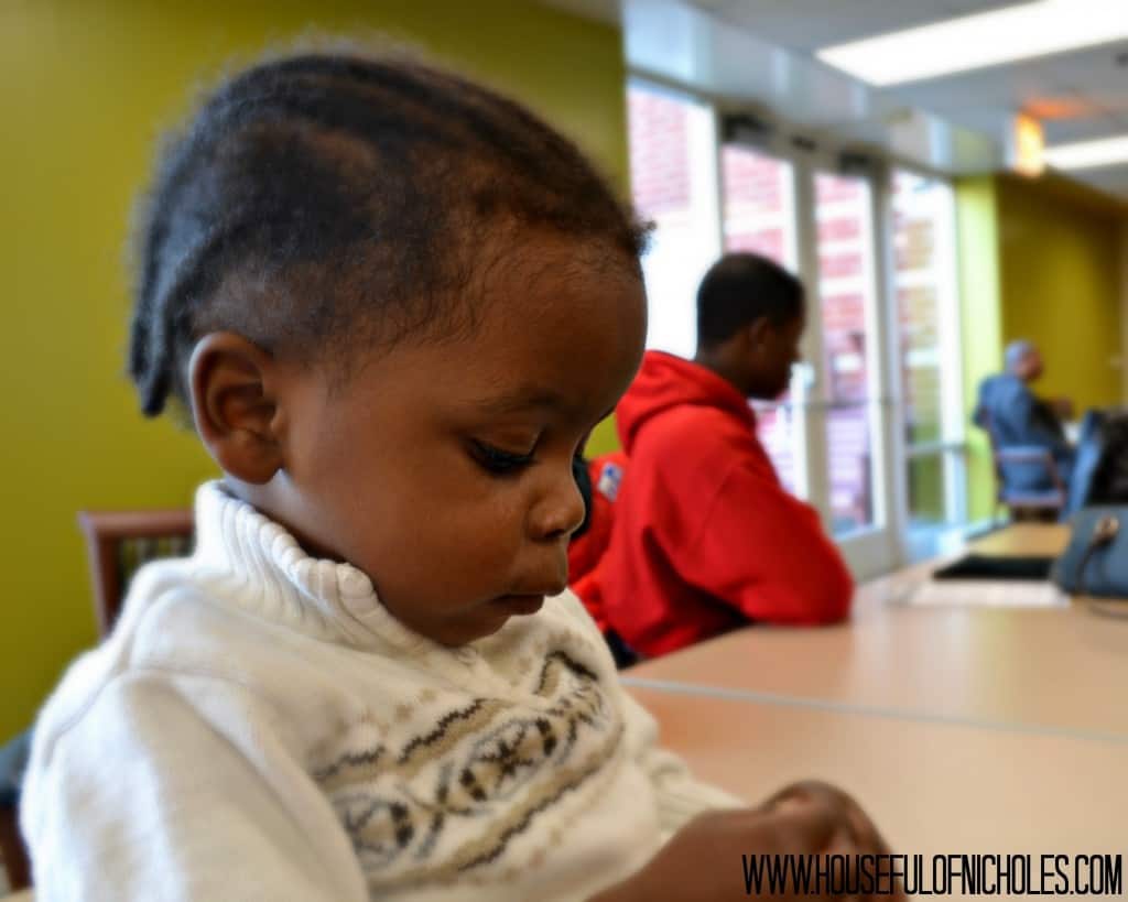 My bundle of pure energy. Sir Twizzler. Focused on something while in church. He totally represents the daily busyness that I go through. His inquisitive nature tends to border on stuntman unlike his very mild twin sister. I can find him pulling one of his chairs up to a chair or bookshelf to get a better reach to something that he just has to have. Just like his big brother, he has made my heart drop instantly on more than one occasion. Usually, he doesn’t even realize that mommy was one step from being admitted to a hospital, or that he was one step from bawling like a baby.