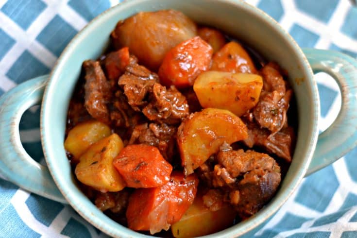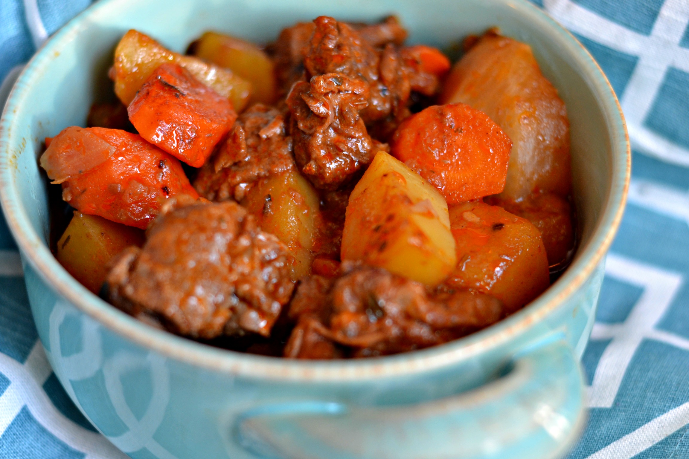 This is a stew that probably needs to be made in a dutch oven, and not a crock pot the first time around. That's just my suggestion. It all cooks on the stove top, and is done in about three hours, so it makes the perfect morning cooking options.
