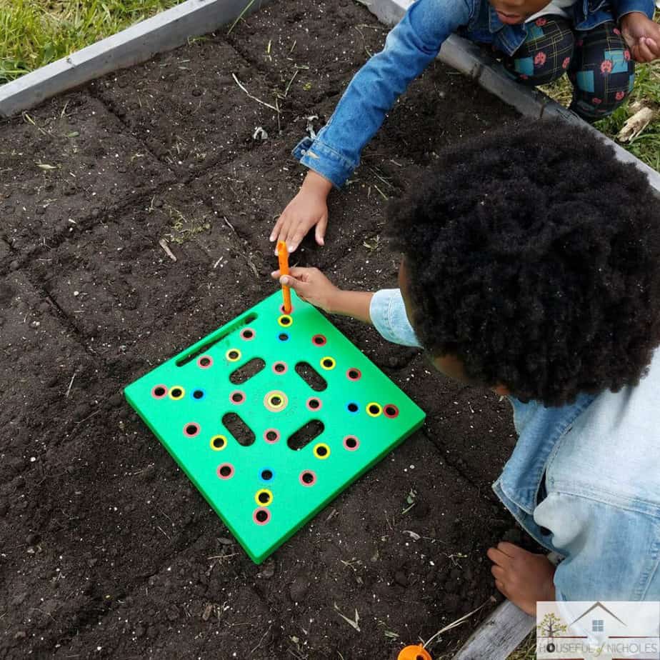 This Seeding Square square foot gardening template is great for kids too! We’ve shared on We Sow We Grow while the kids used it to sow directly into the soil. Make sure to check it out!
