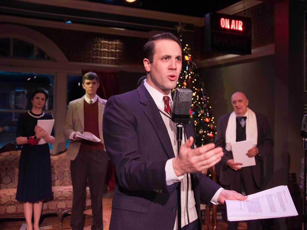 Last year, at our old house, I became accustomed to listening to The Play’s the Thing while sewing my office late into the evening. There was something about listening to a play from a wonderful work of art, and being able to let my imagination come to life.  Listening to NPR and having A Prairie Home Companion fill my car and home with stories of Guy Noir is one of my favorite things to do during the week, so it comes as no surprise that I thoroughly enjoyed the radio presentation of It’s A Wonderful Life.  It was refreshing to see actors having to emote not for us in the audience, but for those pretend listeners tuning in for an evening of entertainment. There were no focused gazes out into the audience, but all of their stage presence went into making sure those on the other side of the radio felt as if they were in the very room with the actors.