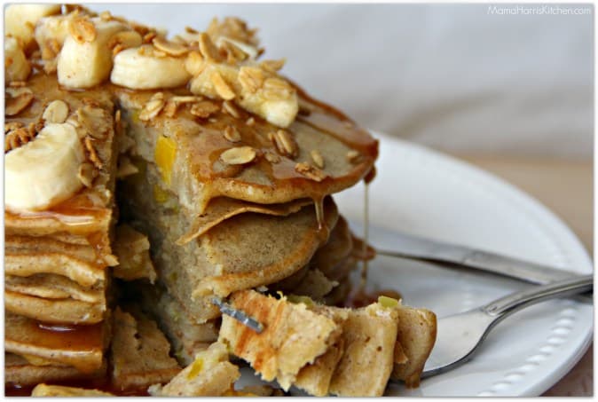 Fruit in pancakes?! Absolutely! Mama Harris’ Kitchen adds MANGO to hers to give these pancakes a bit of a tropical flair. And as if that isn’t enough, she adds banana and homemade cinnamon syrup!