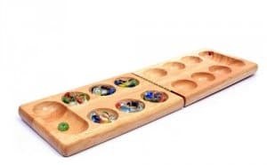DIY Activity: It’s easy to make your own Mancala board! Simply get an empty egg carton with 12 small “pits,” trim off the sides, and decorate it with markers or paint. Get two containers (such as bowls) and place one at each end of the egg carton as the “banks,” where players collect their winnings. For the “stones,” you can use small items, such as marbles, beans, or even candy! For detailed rules on how to play, click here: How to Play Mancala