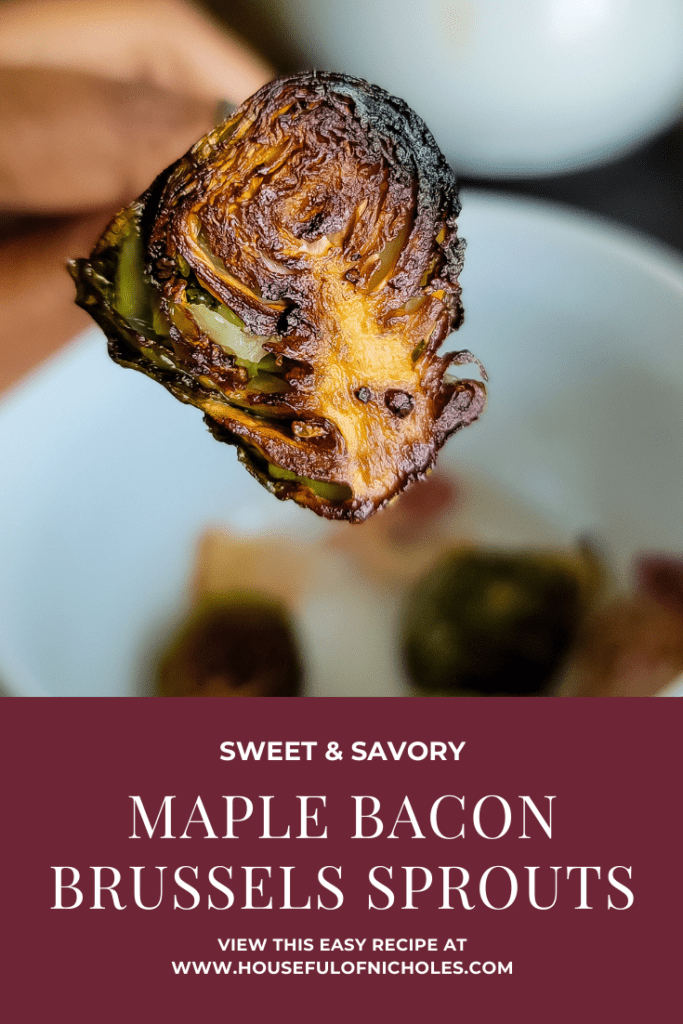 Do you like Brussels sprouts? I do. I love them a lot more since I figured out roasting them at high temperatures in the oven would produce a caramelized goodness that crisps the outer leaves, and leaves the inside of the sprout nice and tender. We’ve also discovered that pairing it with something salty (usually bacon or pancetta) and sweet (balsamic vinegar, apples, or maple syrup) really helps pull the side, or the main dish together beautifully. This time, maple bacon Brussels sprouts have made it to our table, and they are delicious.