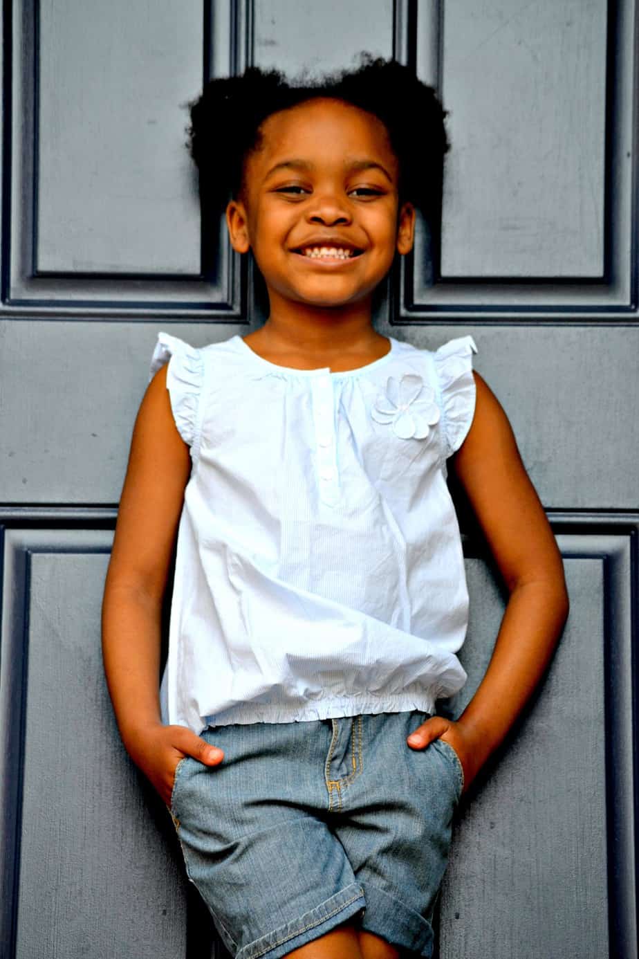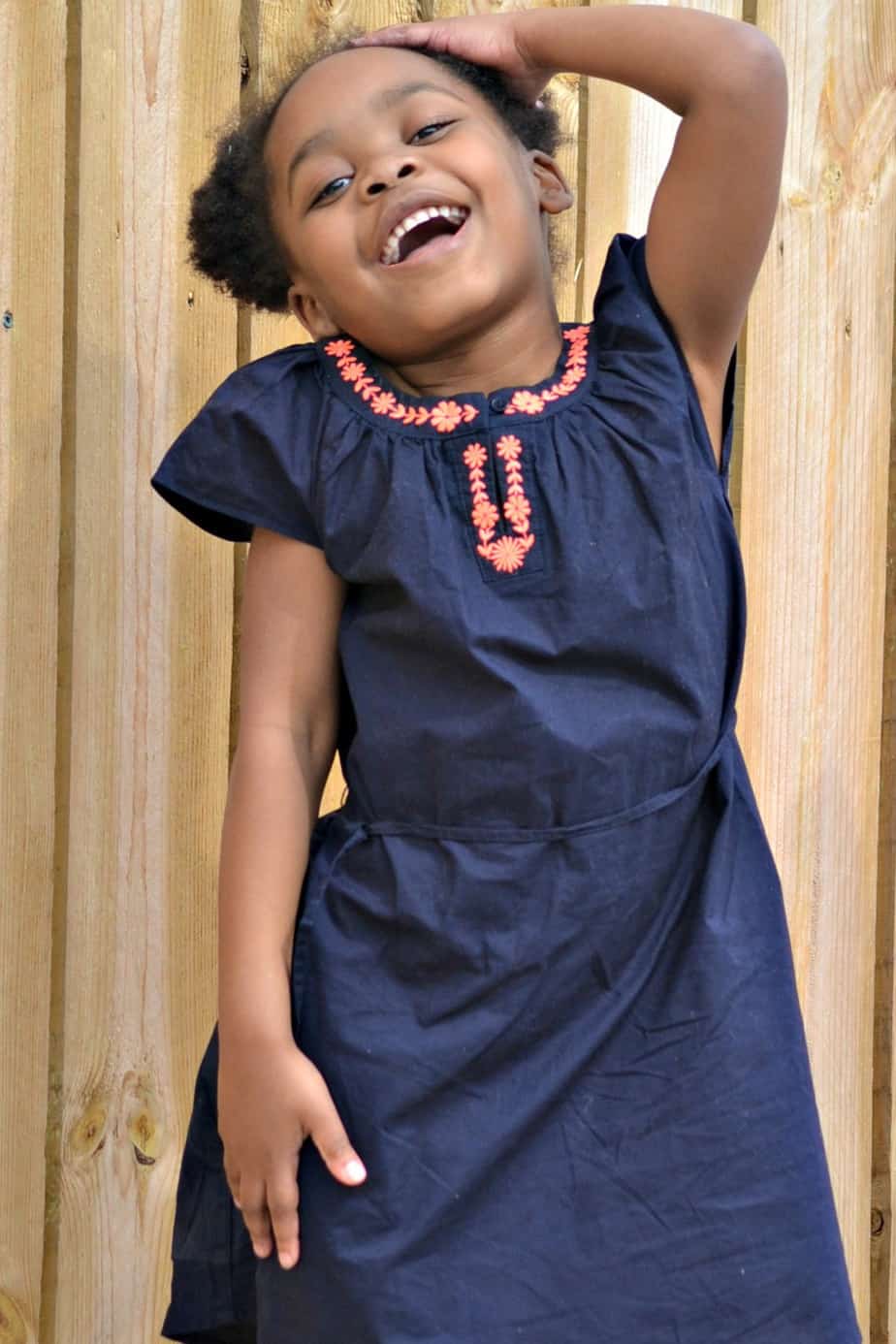 Just so you know, I didn’t have to beg the ladybug to pose once. She was on from the moment we stepped outside to take photos. After I was done shooting, she marched right back into the house, changed into the newest outfit, and came back out ready to go. America’s Next Top Model has NOTHING on her! NOTHING I SAY! This is the dress that both the ladybug and Lil Miss have alike. Lil miss said that she loved the pink (it’s coral) detail around the neckline