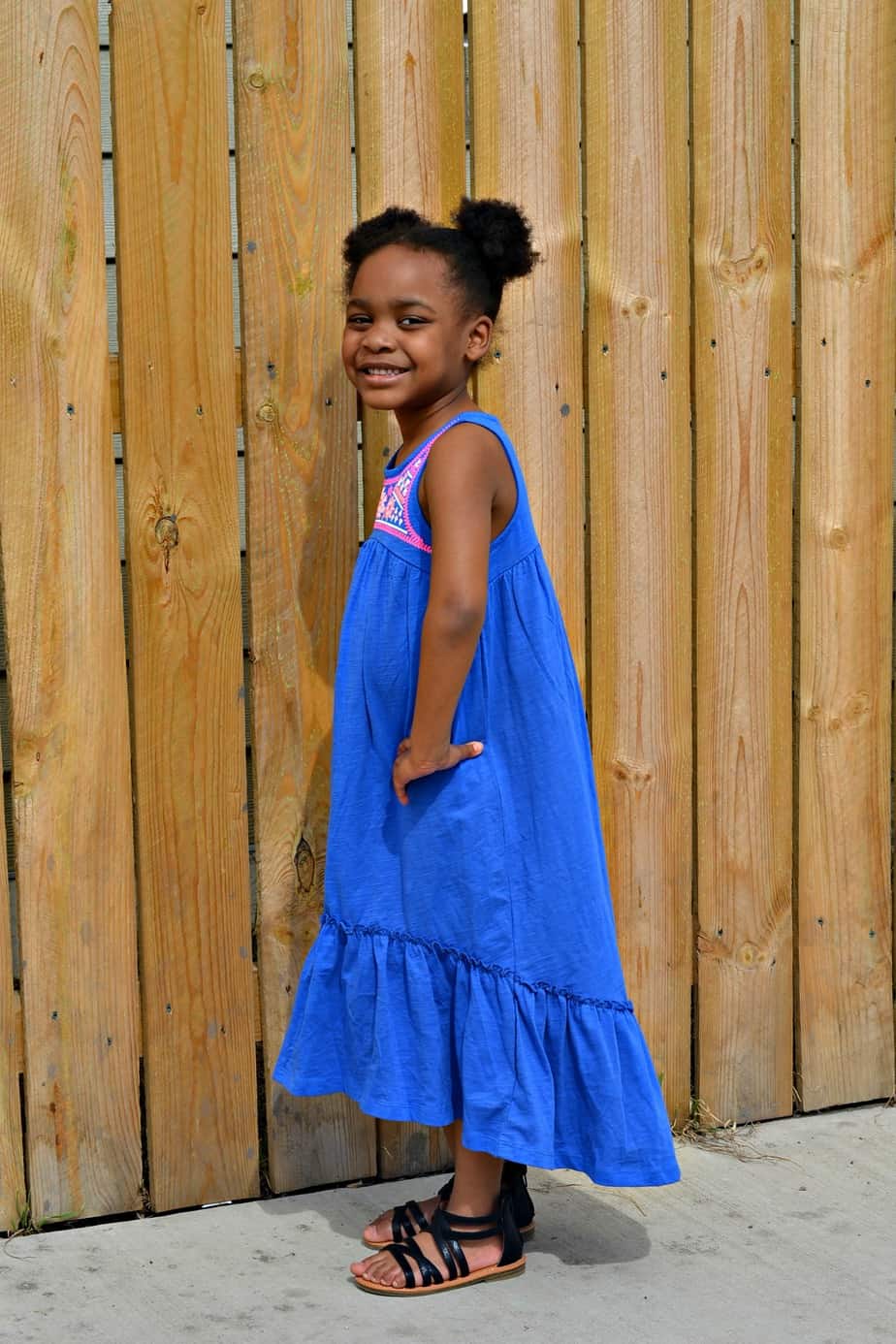 I’m not sure if I can really tell you which dress the Ladybug liked the most. What I can tell you though is they are all very friendly with playing outside, and she has no trouble putting the clothes on herself. She’s a lover of LONG dresses just like I am, and appreciates a good maxi to stroll around the neighborhood, or farmer’s market in. Paired with a great set of strappy sandals (all great pairs at OshKosh, we just couldn’t agree on one) you’re good to go!