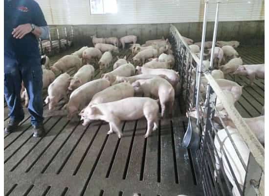 Overcrowding is not an issue on this farm. All pens have enough room to allow the pigs to roam around as necessary.