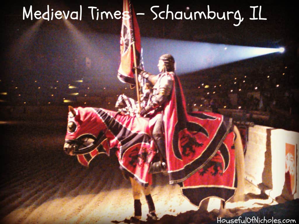 A couple of weeks ago, the Houseful was excited to attend a showing of knights, falconry, and rivalry at Medieval Times Castle in Schaumburg, IL. We got to do all of this while eating with our hands in a castle.
