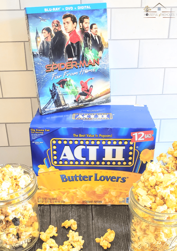 Making these recipes also ensured that everyone would be quiet while watching the movie. We weren’t able to make it to the theater to catch Spider-Man: Far From Home so we needed movie theater rules for our movie night.