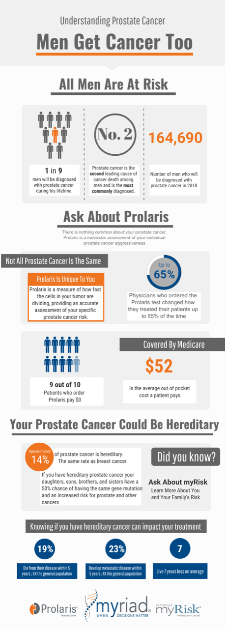 Prolaris prostate cancer testing provides a new measure of the aggressiveness of an individual’s prostate cancer. Getting a “Prolaris Score” will give both the patient and the physician additional information about the true nature of the cancer that no other test can. Learn more about Prolaris here: https://prolaris.com/