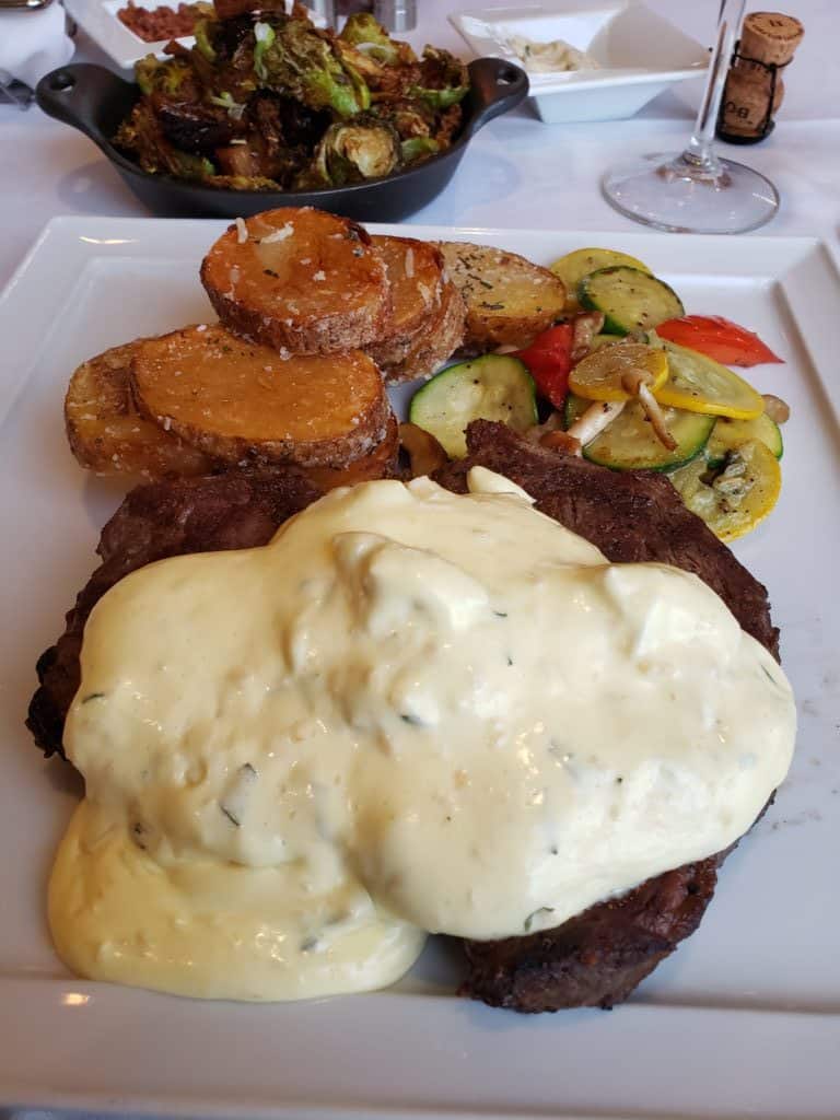 First, I’m going to admit, my eyes were bigger than my stomach. There was NO WAY that I was going to be able to finish the feast that was laid before me, but I was going to give it the good ol’ college try. My favorite part of this meal? The appetizer and salad, but that’s only because I wasn’t able to get past two bites of my Delmonico Oscar to really relish it. However, I took it home and devoured it and while I wasn’t sitting in a plush chair in Table Restaurant, it was still good. The attention to detail of the server only added to the level of fine dining Table has come to be known for. Adding to the fact that you could totally take your drink to the lounge area which gave me old world smoking room vibes (without the smoke) I felt quite adult as I watched the sky darken as the sun was going down.