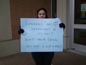 While I was probably one of the only patrons at the protest – I do feel that I did my part because MORE patrons should show that they are serious about not wanting the libraries to close. It shouldn’t just be something that you say and then keep going.
