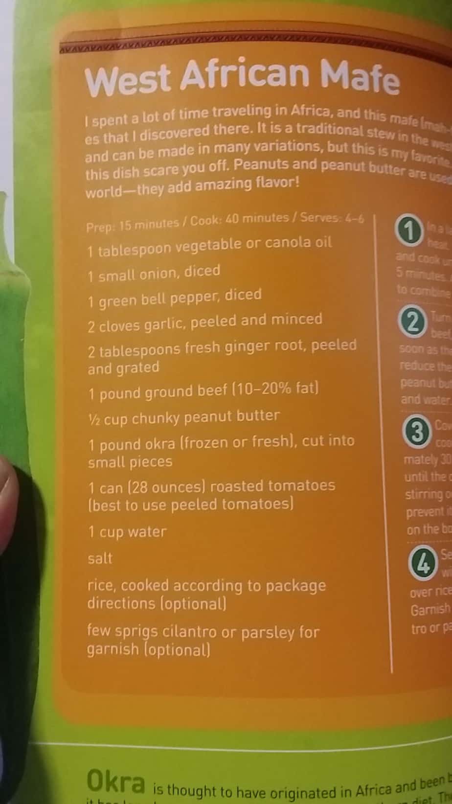 Two weeks ago, I let you all know that I was National Geographic Kids Insider, and with that comes cool things like the National Geographic Kids Cookbook that I was able to review and test out. Since we are in the month of March, and the cookbook takes you on a culinary journey month, by month, we decided to make the Mafe Stew (lovingly called Peanut Stew by some) and see how we liked it. Adding peanut butter to a stew caused some reservations with me for a moment, but I’m always about eating new things, and I wasn’t disappointed! What’s funny is the fact that most people pause at okra – not me though – I’m all about extra okra in ANYTHING! Make sure to read to the bottom, because I’ll be giving away one cookbook to one of my readers!