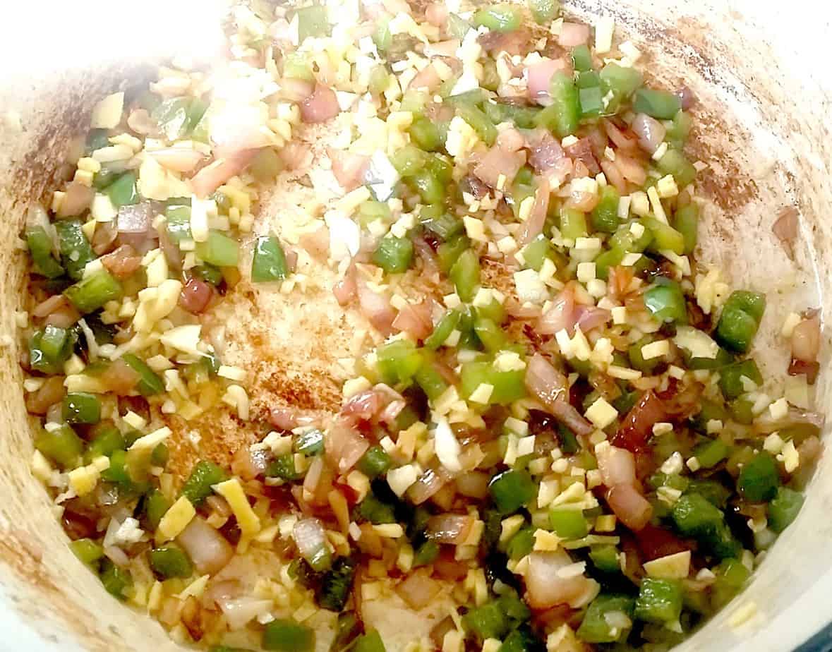 Let me tell you, the smell of all of these aromatics sauteing was divine! Ginger paired with onion, green pepper and garlic is just amazing. From this point on, I knew that we were going to have a great lunch. I was going to make this for dinner, but I started cooking at nine in the morning, and well, yeah, lunch.
